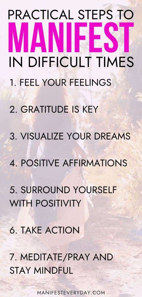 I can’t tell you how many times I’ve been able to still manifest what I want even during the darkest of times. My best advice for this is, as challenging as it can be, is to STOP focusing on what’s going wrong. Acknowledge your current circumstances, of course, but put your focus on where you’re going and how you want to feel.