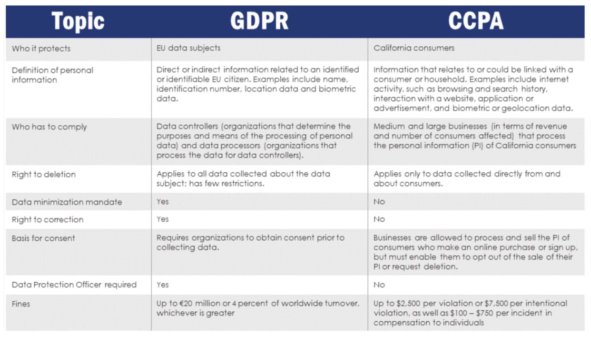 Personal information generally means information that can be used to identify you or that can be easily linked to you (for example, your name, address, telephone number, email address, social security number and date of birth). The privacy laws in some jurisdictions include unique elements in what they consider to be the personal information of the consumers or data subjects they protect. If those laws apply to us, as in the case of the California Consumer Privacy Act (“CCPA“) or European General Data Protection Regulation (“GDPR“), our use of the phrase “personal information” includes the unique elements required by such laws.